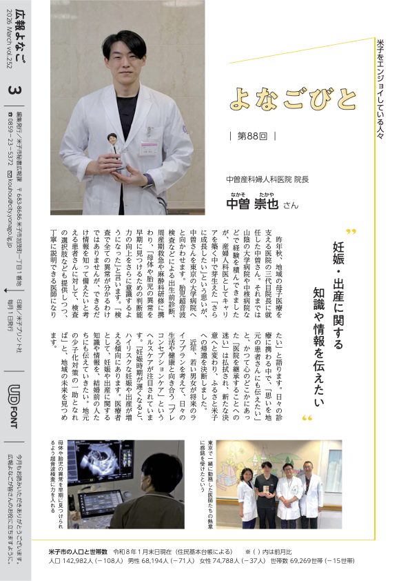 【広報よなご掲載のお知らせ】地域の母子医療への取り組みが紹介されました